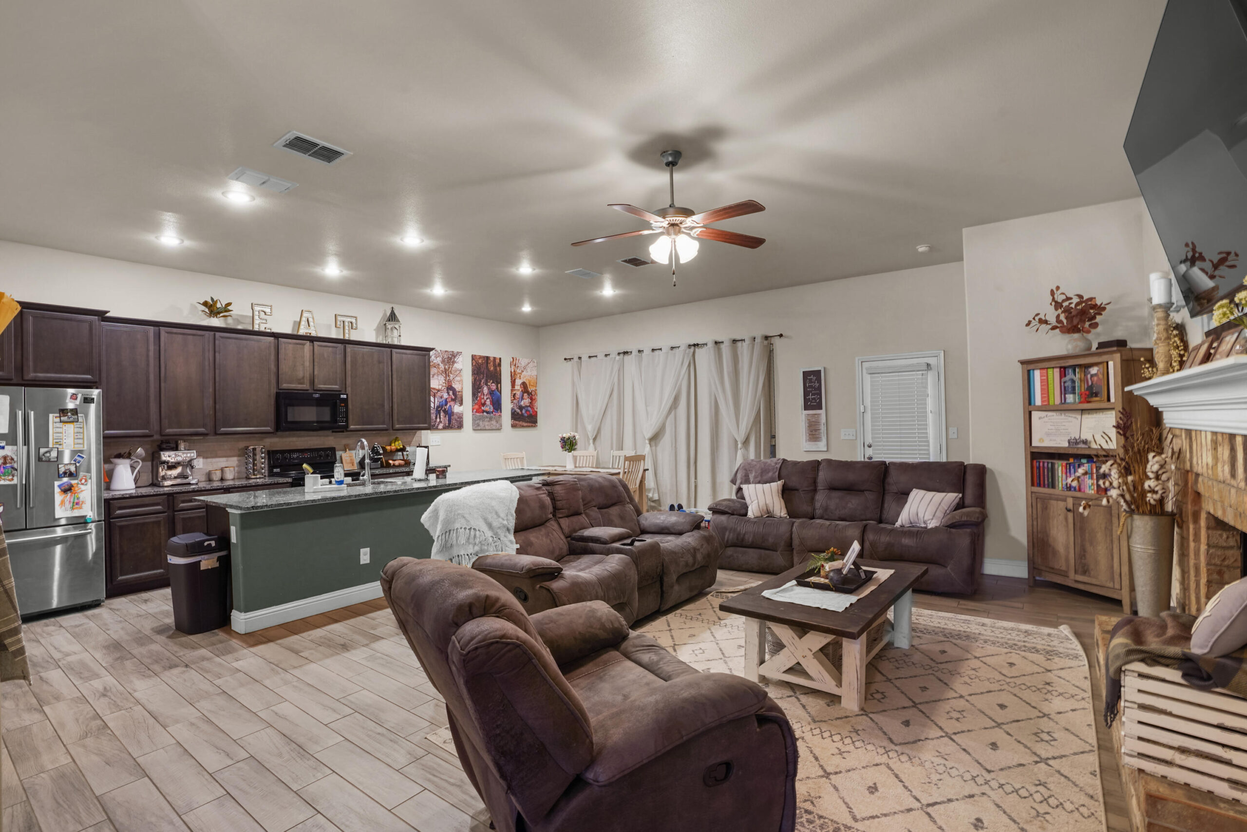 Built in 2018, this beautifully maintained 3-bedroom, 2-bath home sits on a desirable corner lot in the Cooper School District and offers an open-concept layout perfect for everyday living and entertaining. An extended driveway provides ample parking, while the interior features a centered brick fireplace that anchors the main living space with warmth and style. The open floor plan flows seamlessly into the kitchen and dining areas, creating the ideal setup for hosting. Enjoy West Texas sunsets in comfort with solar shades on all west-facing windows and fully adjustable solar screens on the covered back patio. Two large outdoor fans make the patio a relaxing retreat year-round. The isolated primary suite offers a private escape, complete with a separate soaking tub, walk-in shower, dual vanities, and his-and-hers closets. Two additional bedrooms provide flexibility for a growing family, guests, or a home office. Automatic sprinklers make yard maintenance effortless, and the neighborhood features multiple parks and a newer playground just down the street. The premier Cooper East Elementary is located just across University Avenue, making morning drop-offs easier than ever.